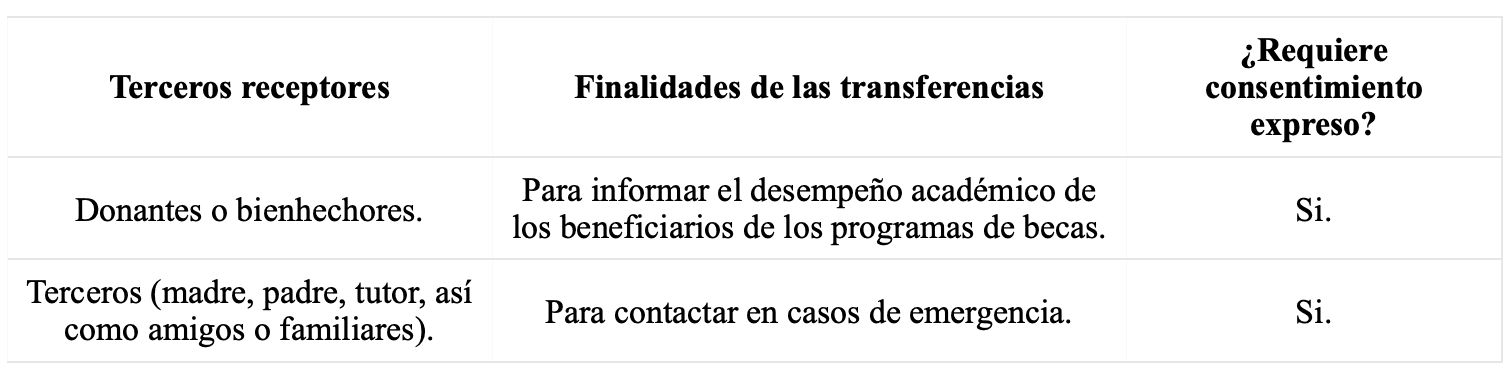 La Universidad trata información personal sobre ti, siendo en específico las siguientes categorías: